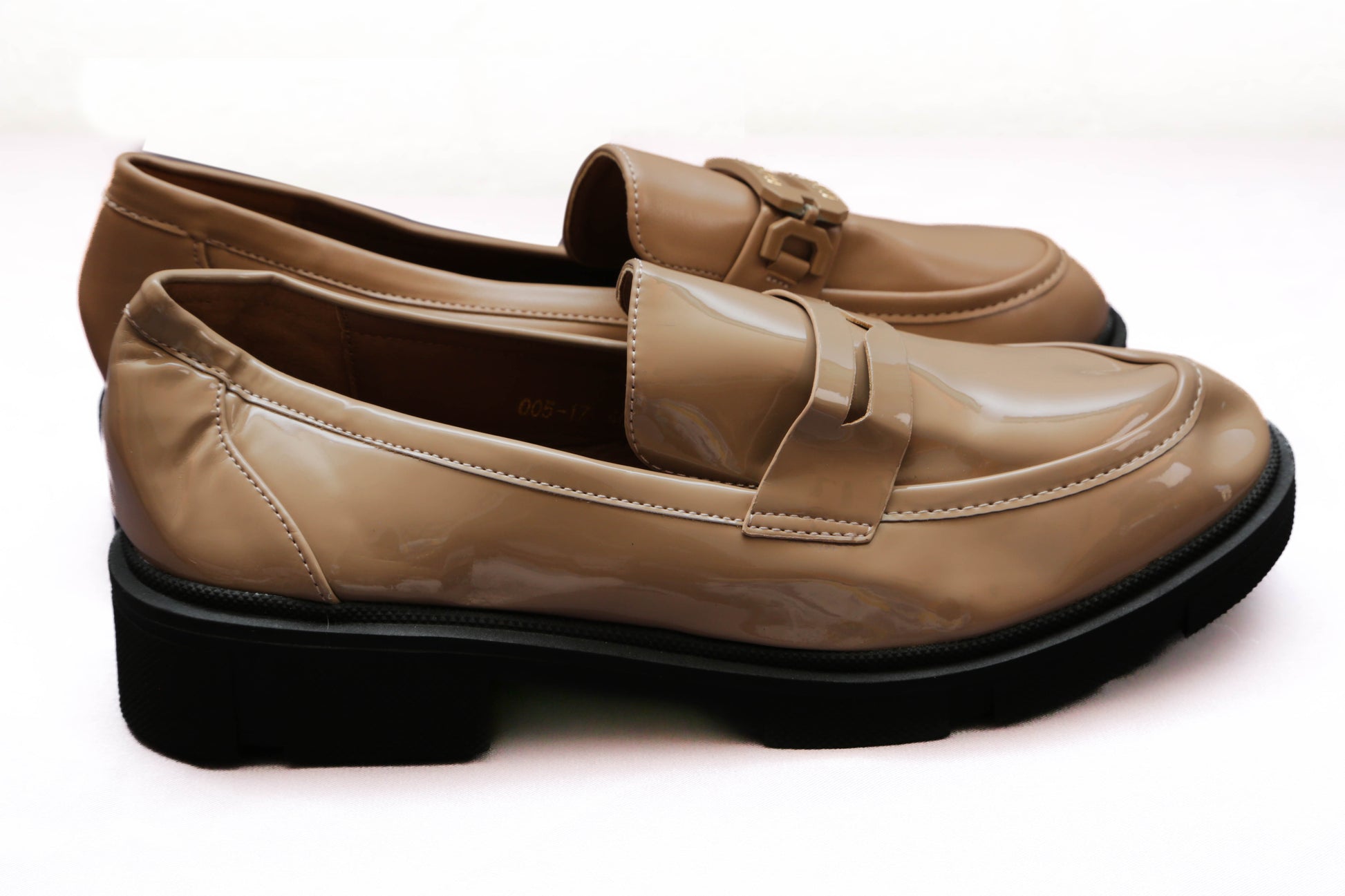 Ces mocassins réinventent le style classique avec une semelle plateforme. La finition vernie apporte une touche de chic urbain. La boucle décorative ajoute un détail élégant et intemporel.