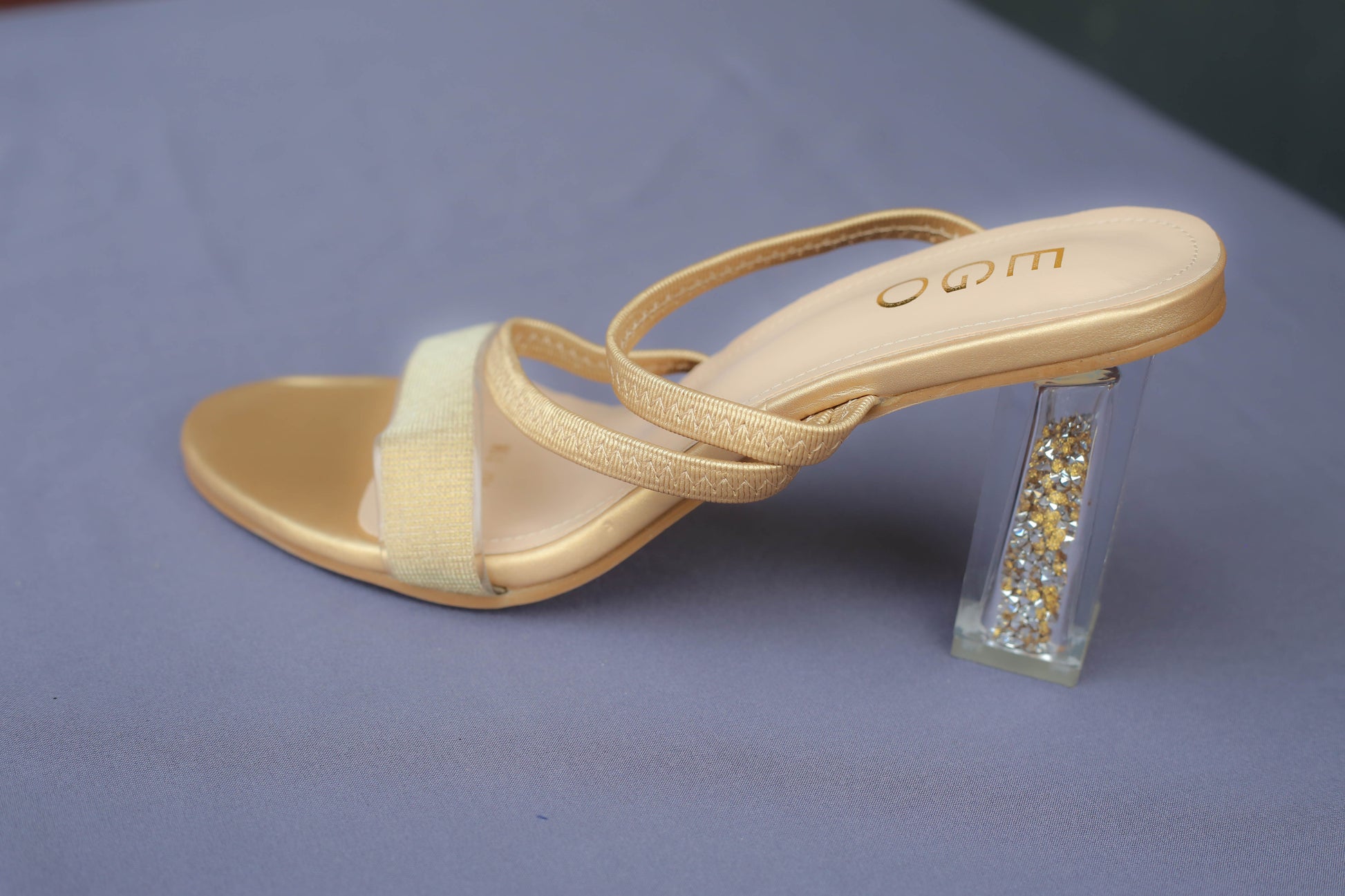 Ces sandales EGO combinent un design minimaliste avec un talon transparent original. Ce talon est rempli de strass qui ajoutent une touche de glamour subtile. La couleur dorée s'adapte à toutes les tenues.