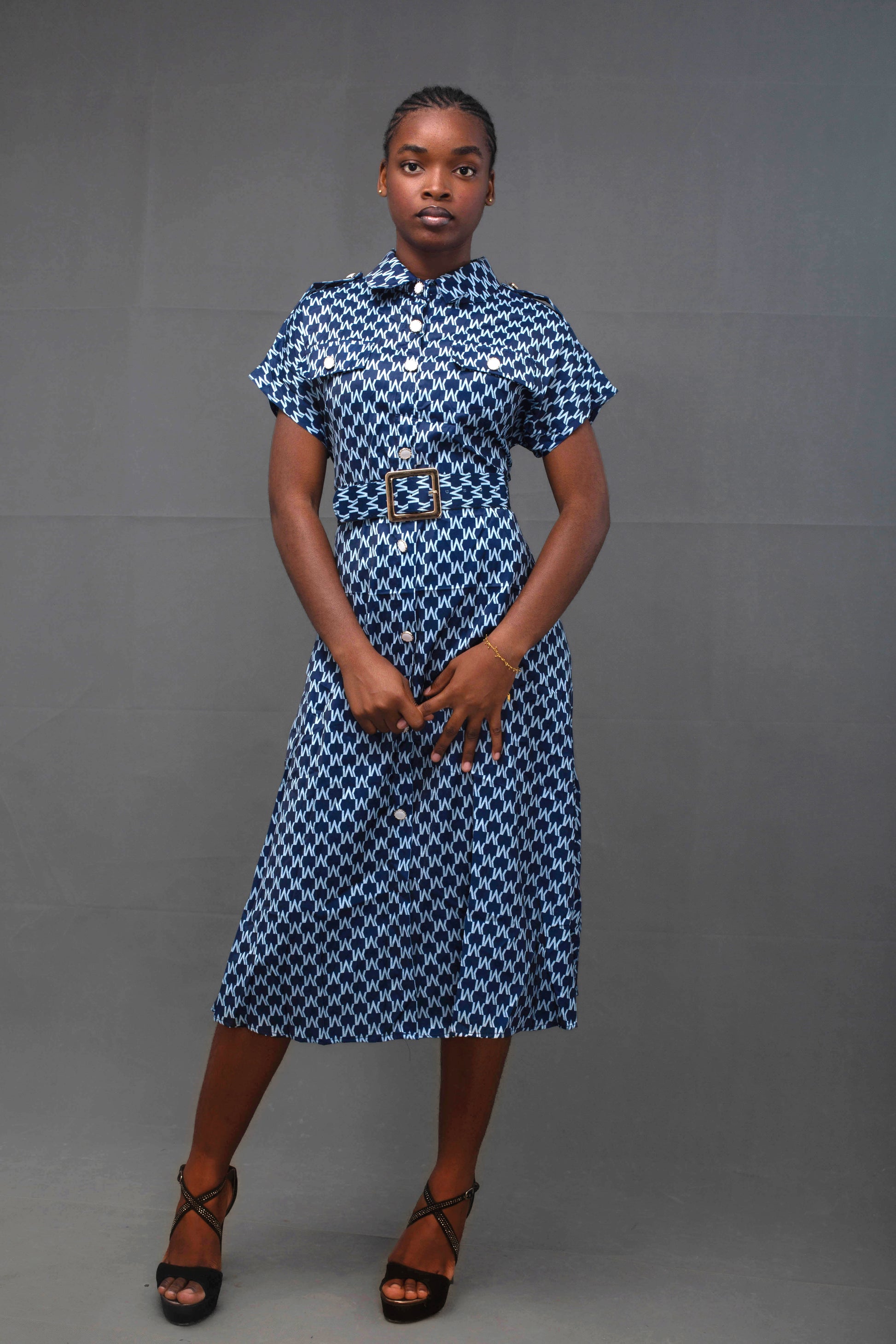 Cette robe mi-longue est l'alliance parfaite entre style professionnel et féminité. Son motif graphique et sa coupe chemisier offrent une allure soignée. La ceinture large sculpte élégamment la silhouette.