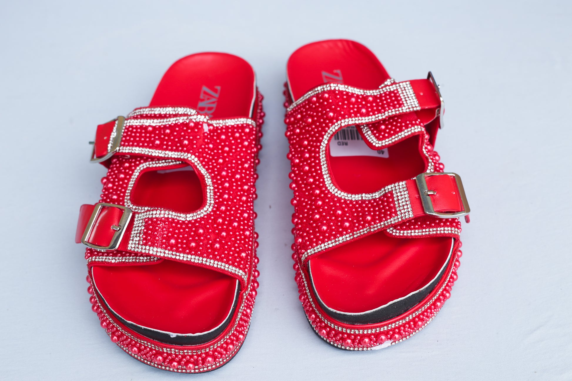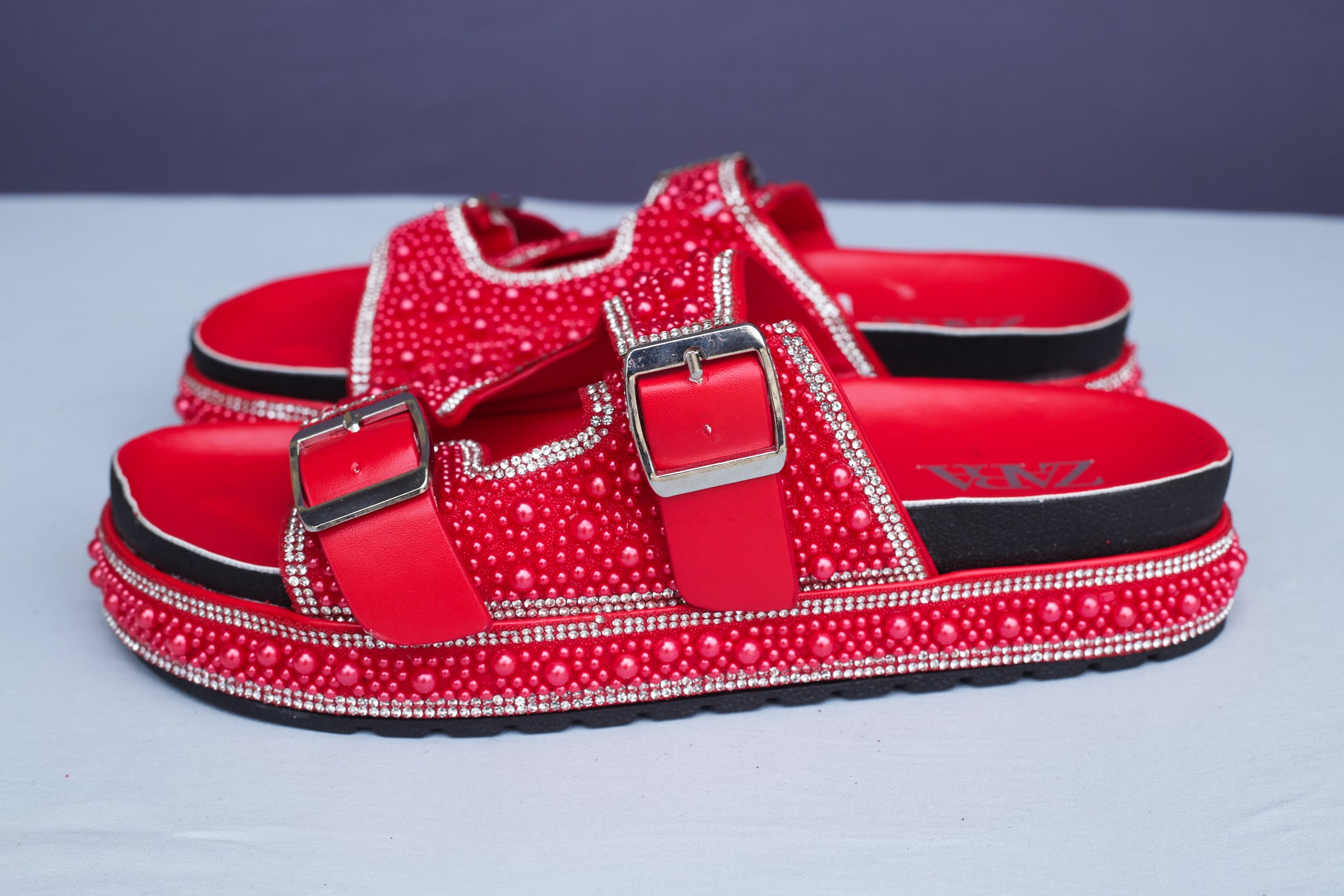 Oubliez la routine et faites briller chacun de vos pas ! Ces sandales "Double Glam" sont la fusion parfaite entre le style décontracté iconique à double bride et l'opulence d'une chaussure de gala. Entièrement recouvertes de perles brillantes et rehaussées de lignes de strass étincelants, elles transforment instantanément n'importe quelle tenue, du jean au look de soirée. Leurs couleurs audacieuses et leur semelle plateforme tendance vous assurent de capter tous les regards, tout en marchant sur un petit nuage.