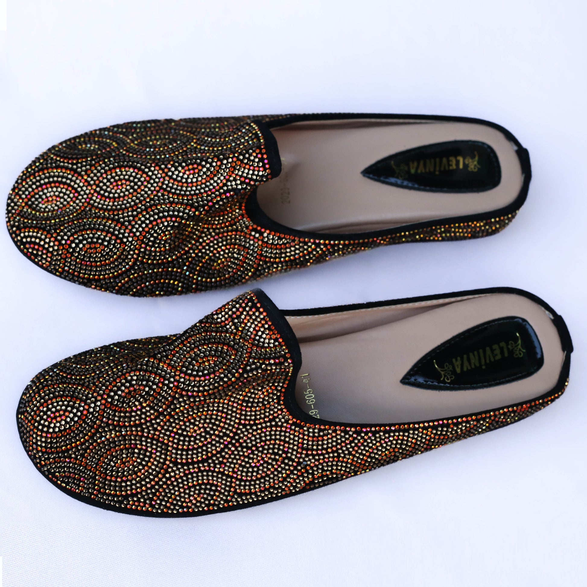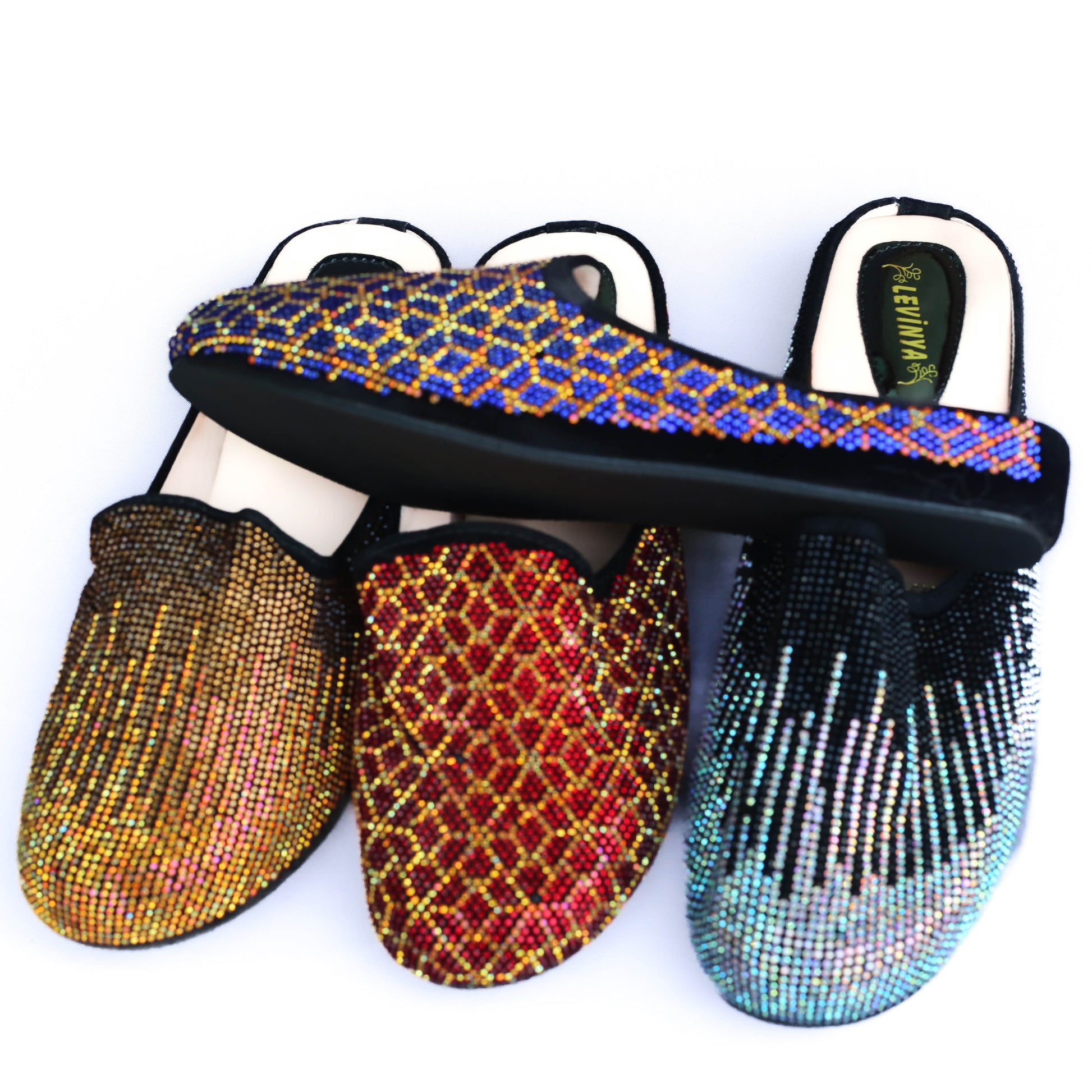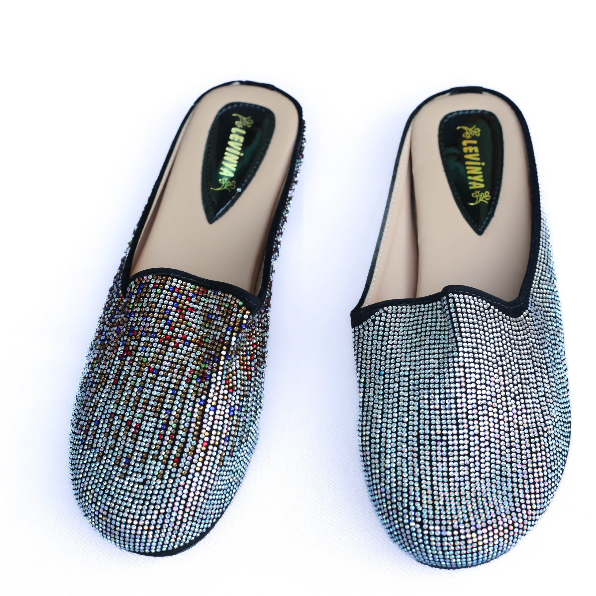 Ces mules à strass sont une véritable déclaration de style, parfaites pour celles qui aiment briller. Leur design, entièrement recouvert de perles brillantes aux motifs audacieux, transforme n'importe quelle tenue en un look spectaculaire et festif. La semelle plate et confortable vous garantit un bien-être optimal sans compromettre votre glamour.